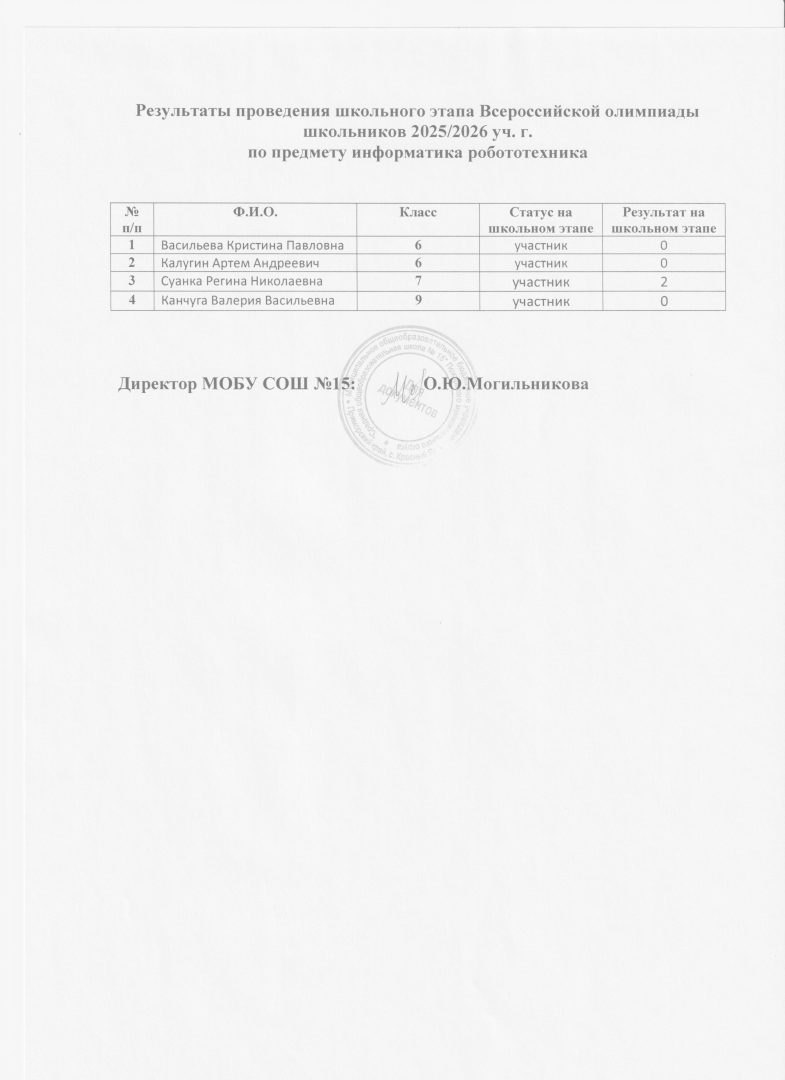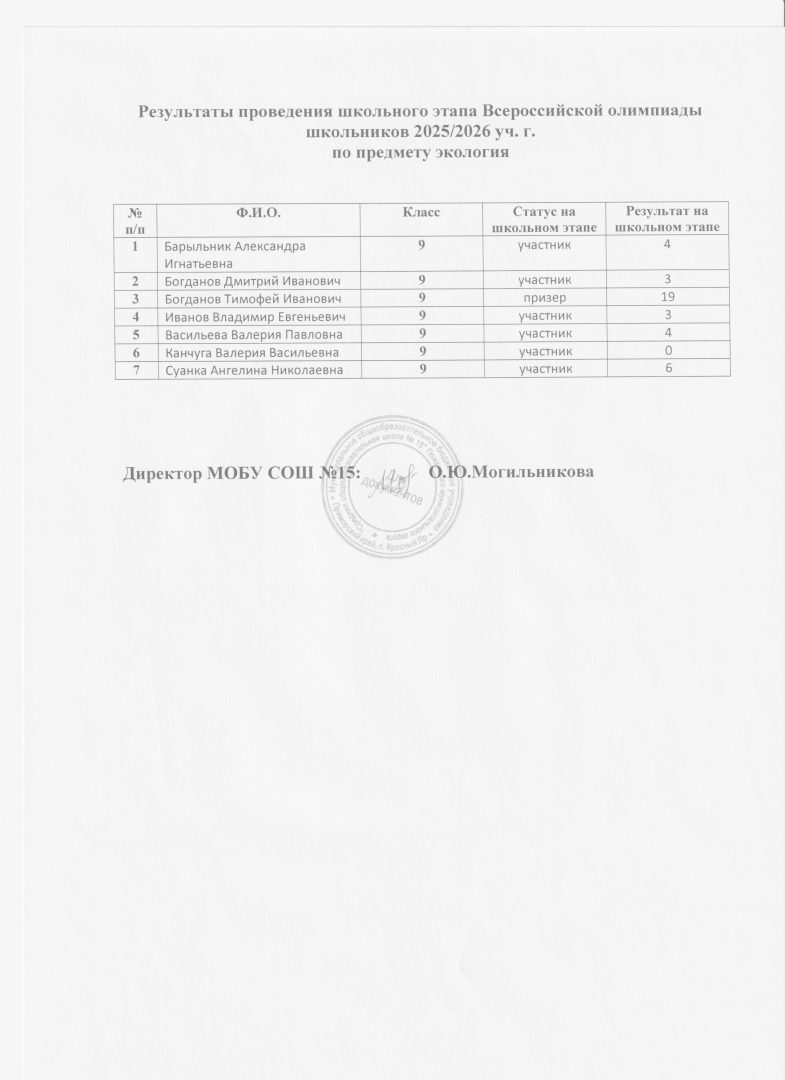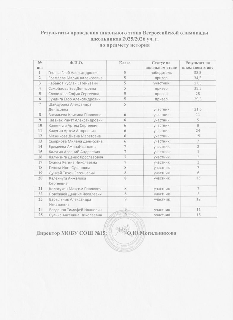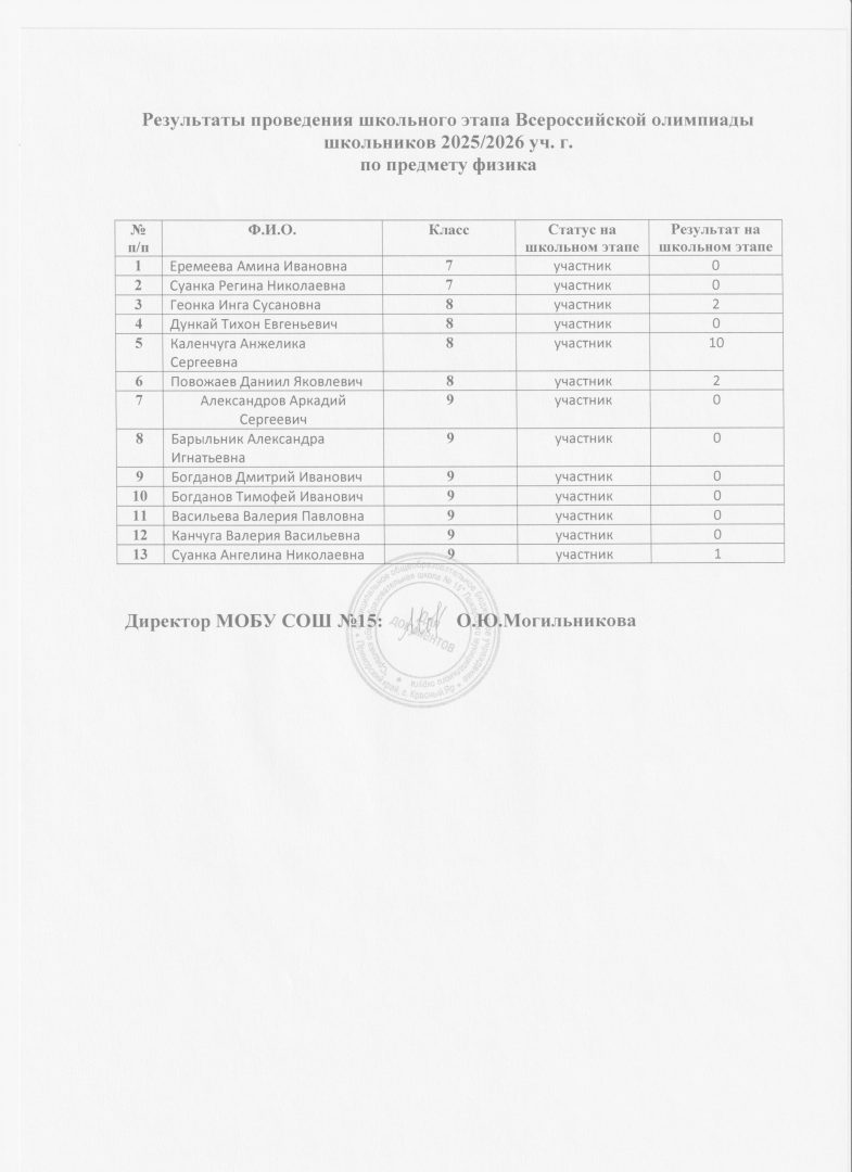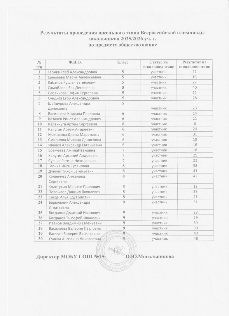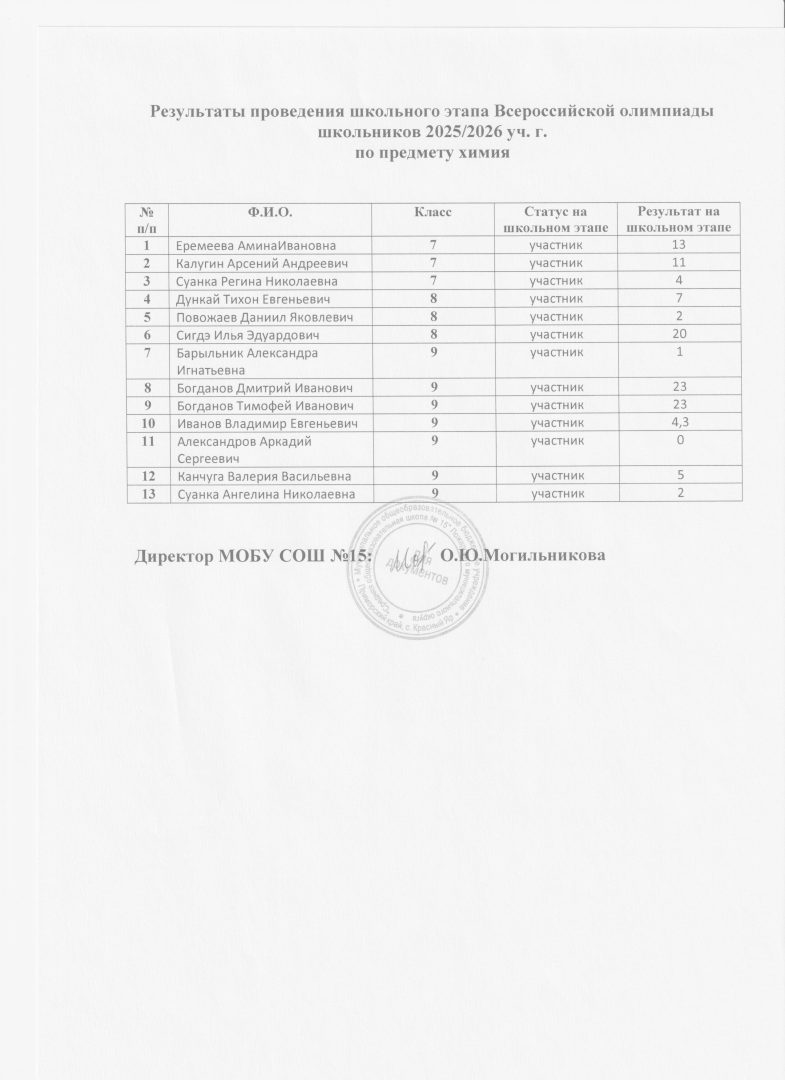 РЕЗУЛЬТАТЫ ВСЕРОССИЙСКОЙ ОЛИМПИАДЫ ШКОЛЬНИКОВ (школьный тур) 2025-2026 учебный год