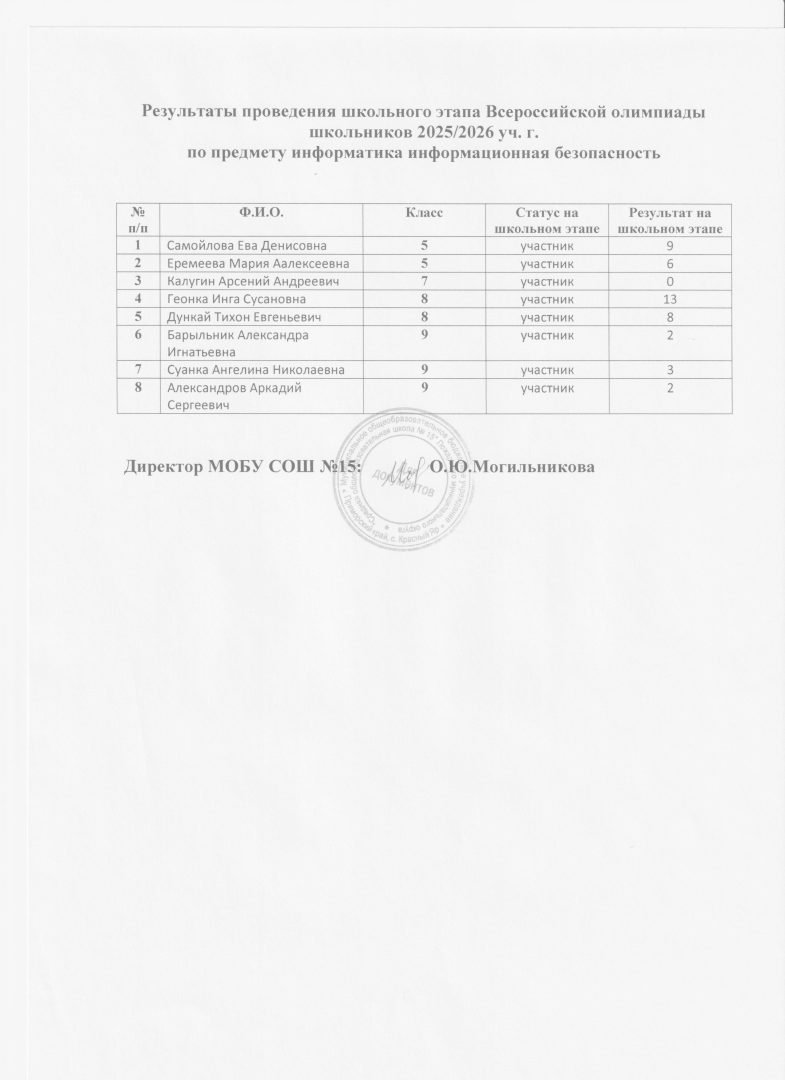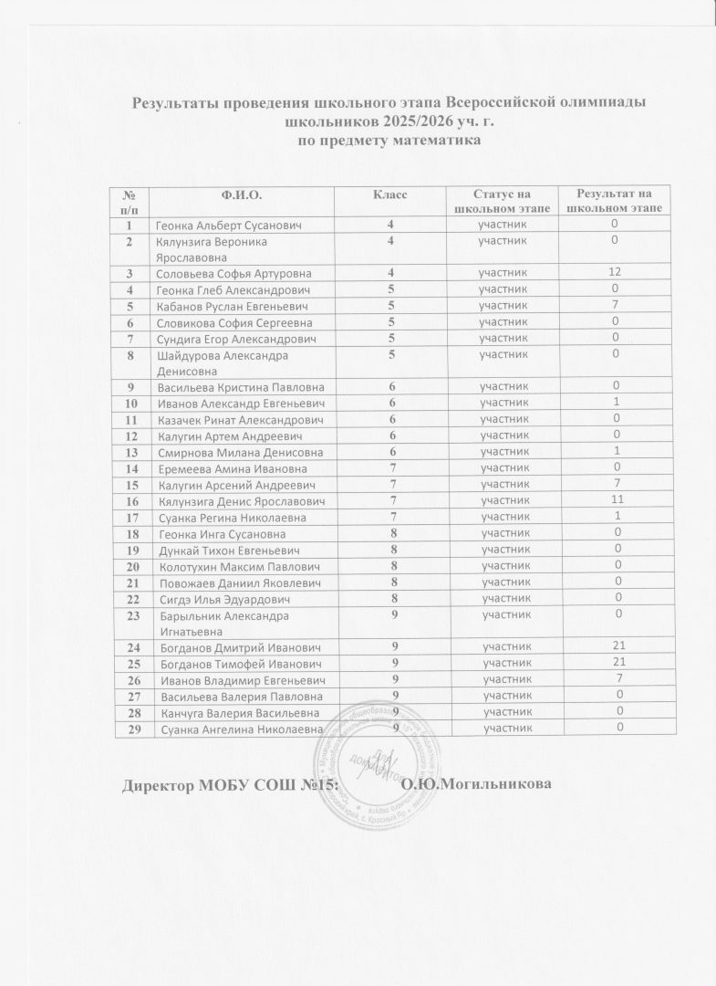- Отчет об участниках ШЭ ВсОШ МОБУ СОШ №15